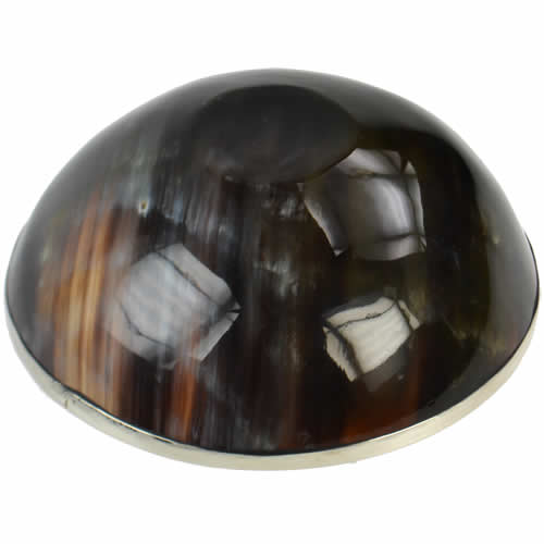 Handmade real horn bowl with a metal rim. May be used for snacks, cool foods, and many other uses. Real horn is very tactile and has a deep lustre. Real horn is opaque so the appearance of the bowl does change in different lights. Every bowl is different in appearance so will look different from the one in the photograph.